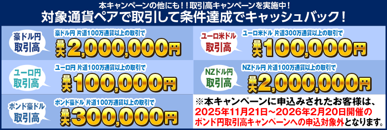 ・本キャンペーンに申込みされるお客様は、${year}年11月21日~${next_year}年2月20日開催のポンド円取引高キャンペーンへの申込対象外となります。