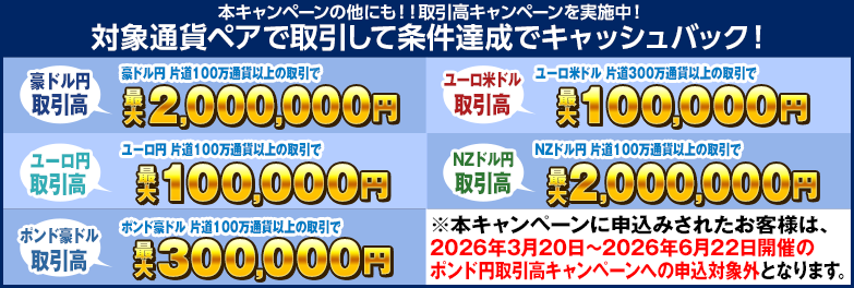 ・本キャンペーンに申込みされるお客様は、2026年3月20日~${next_year}年6月22日開催のポンド円取引高キャンペーンへの申込対象外となります。