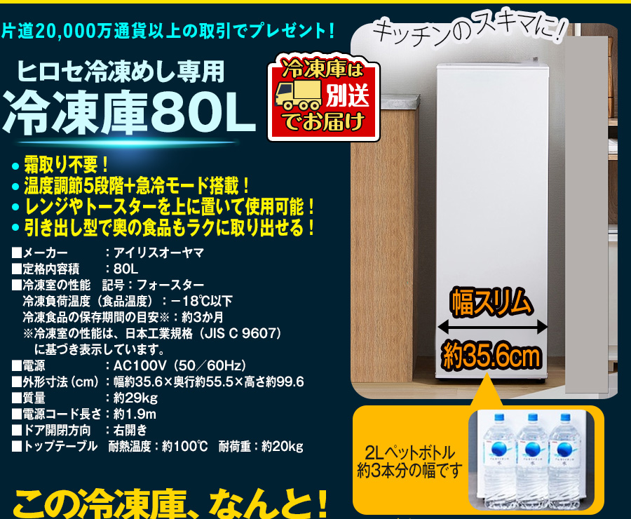 家電:ヒロセ冷凍めし専用冷凍庫 ホワイト⁄80L |